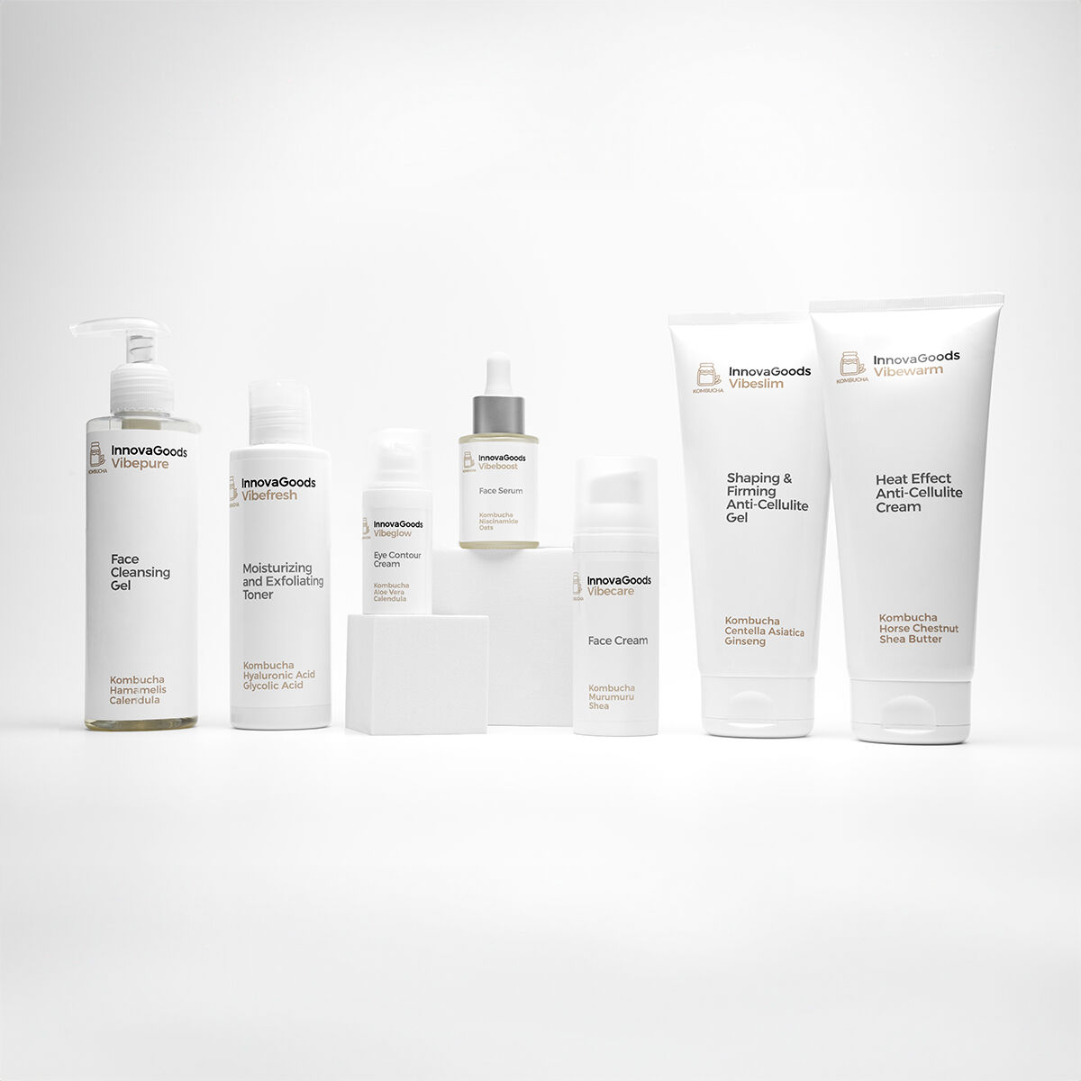Vibecare InnovaGoods Kombucha hydrating facial cream nourishes, hydrates, protects, regenerates and provides elasticity. Natural ingredients. Active Ingredients: Kombucha, karite and murumuru butter, calendula and macadamia oil, panthenol and Symcalmin®.